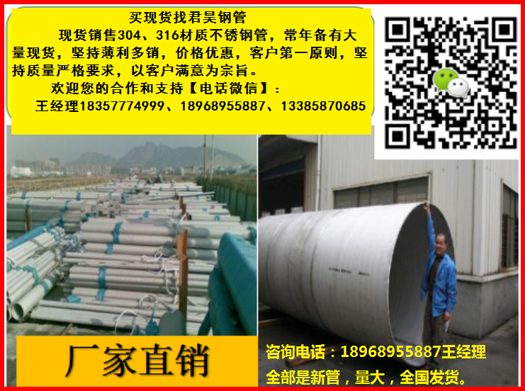 溫州君昊不銹鋼專業生產青山不銹鋼管,其中304不銹鋼價格市場最便宜,規格齊全質量可靠、銷量最大),歡迎各位朋友及同行采購合作。祝各位同行朋友們,生意興隆,財源廣進。歡迎各位新老客戶合作雙贏。