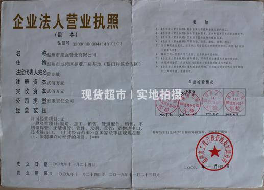 | 企業(yè)名稱 | 溫州市集強管業(yè)有限公司 | 統(tǒng)一社會信用代碼 | 330303000044148 |