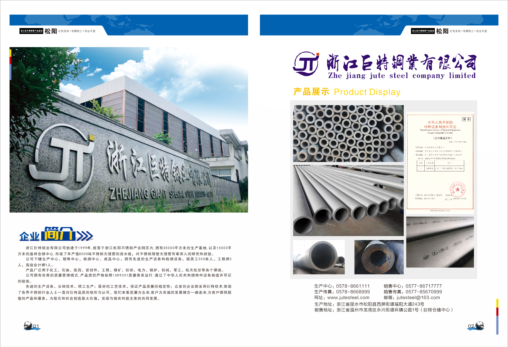 巨特鋼業(yè)有限公司是專業(yè)生產(chǎn)各種規(guī)格不銹鋼管的企業(yè),公司擁有一流的設(shè)備,高素質(zhì)的人才,完善的質(zhì)量管理模式,產(chǎn)品質(zhì)控嚴(yán)格按照ISO9001質(zhì)量體系運(yùn)行,使產(chǎn)品精益求精。 溫州巨特不銹鋼有限公司引進(jìn)先進(jìn)的生產(chǎn)設(shè)備、尖端技術(shù)精工生產(chǎn)不銹鋼產(chǎn)品;表面光潔度衛(wèi)生精度高、尺寸精確、高性能等優(yōu)勢(shì)特點(diǎn)。最好的工藝技術(shù),保證產(chǎn)品質(zhì)量的穩(wěn)定性;眾多的企業(yè)采用巨特高精度鏡面是對(duì)巨特產(chǎn)品品質(zhì)的肯定。材質(zhì):304、316制造,專營(yíng):厚壁不銹鋼管規(guī)格:外徑φ25-φ273。有現(xiàn)貨供應(yīng)304不銹鋼管 。浙江巨特鋼業(yè)有限公司倉儲(chǔ)中心位于龍灣區(qū)永興大塘(金洲特鋼)對(duì)面,電話:0577-85809555 0577-86859718 0577-86717777 手機(jī):13777776337 13356188337 我們將以為用戶提供最好的服務(wù)為宗旨,竭誠(chéng)為您服務(wù)!