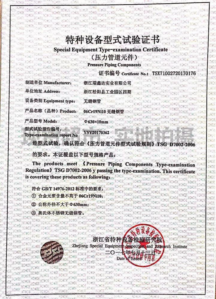 浙江江瑞鑫達(dá)實(shí)業(yè)有限公司,創(chuàng)始于1992年,是國內(nèi)大型不銹鋼無縫管生產(chǎn)企業(yè),公司固定資產(chǎn)超億,瑞鑫達(dá)專業(yè)生產(chǎn)高溫(鎳基)合金、奧氏體、雙相鋼、尿素級(jí)不銹鋼、超級(jí)不銹鋼等系列的鋼管。公司配備年產(chǎn)15000噸不銹鋼無縫管生產(chǎn)線,公司擁有德國進(jìn)口直讀光譜儀、超聲波探傷儀、渦流探傷儀、水壓 試驗(yàn)機(jī)、X射線透視儀、氮氧分析儀、萬能試驗(yàn)機(jī)、沖擊試驗(yàn)機(jī)、自動(dòng)碳硫分析儀、內(nèi)窺鏡等全套檢驗(yàn)檢測設(shè)備。先進(jìn)的檢驗(yàn)檢測設(shè)備以及嚴(yán)格的科學(xué)化管理, 確保每一批出廠產(chǎn)品能滿足客戶的需求,質(zhì)量管理體系ISO9001認(rèn)證、環(huán)境管理體系IS