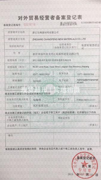 對外貿易經營者備案登記表