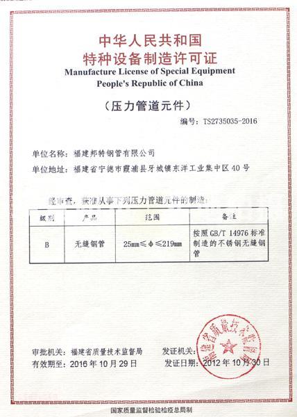福建邦特鋼管有限公司主要生產(chǎn)各種材質(zhì)的不銹鋼無縫管、不銹鋼方管,及不銹鋼衛(wèi)生管等。不銹鋼工業(yè)管、壓力管規(guī)格:¢6-¢630MM,壁厚0.5-25MM。福建邦特鋼管有限公司以品質(zhì)創(chuàng)新為基礎(chǔ),持續(xù)提高產(chǎn)品質(zhì)量和服務(wù)質(zhì)量!